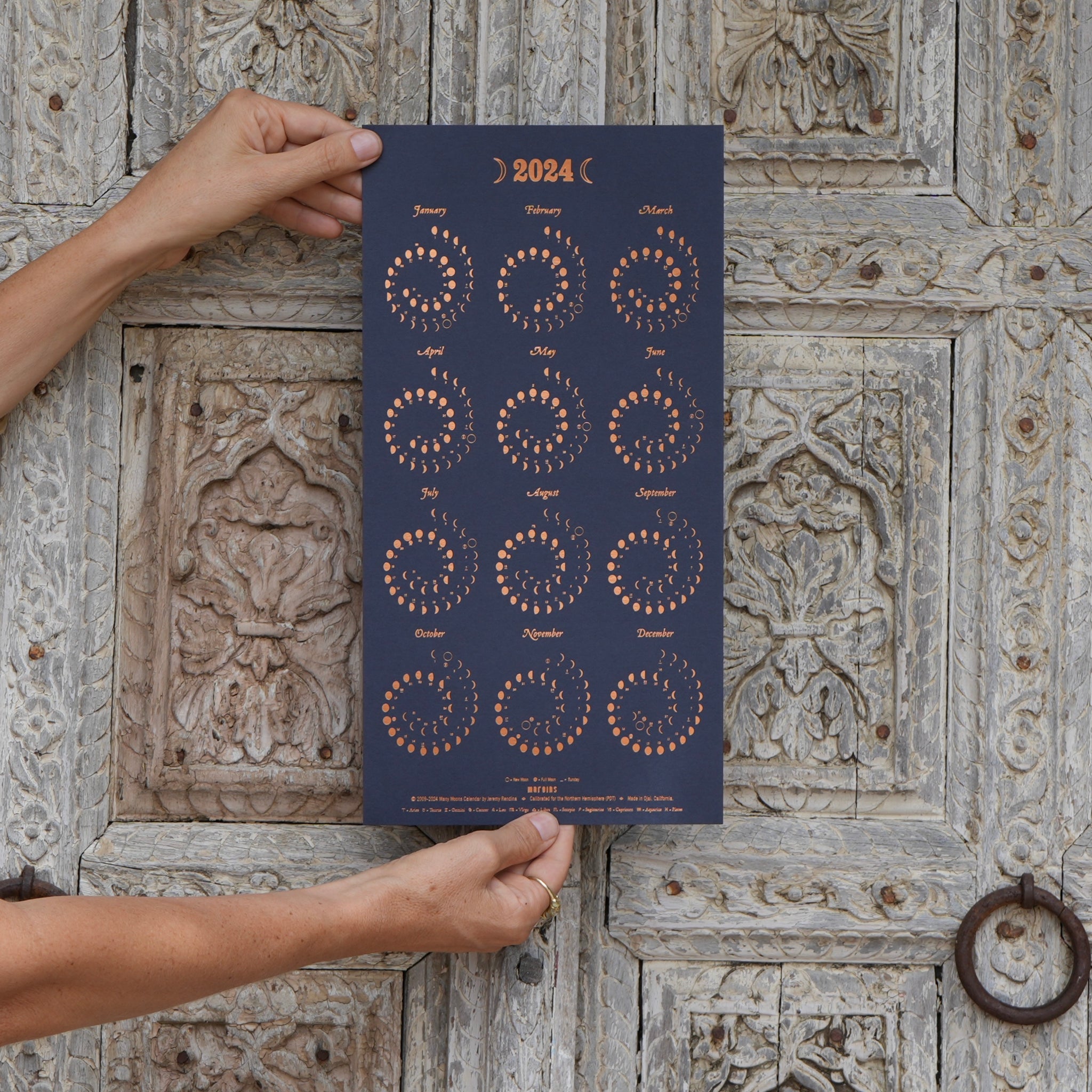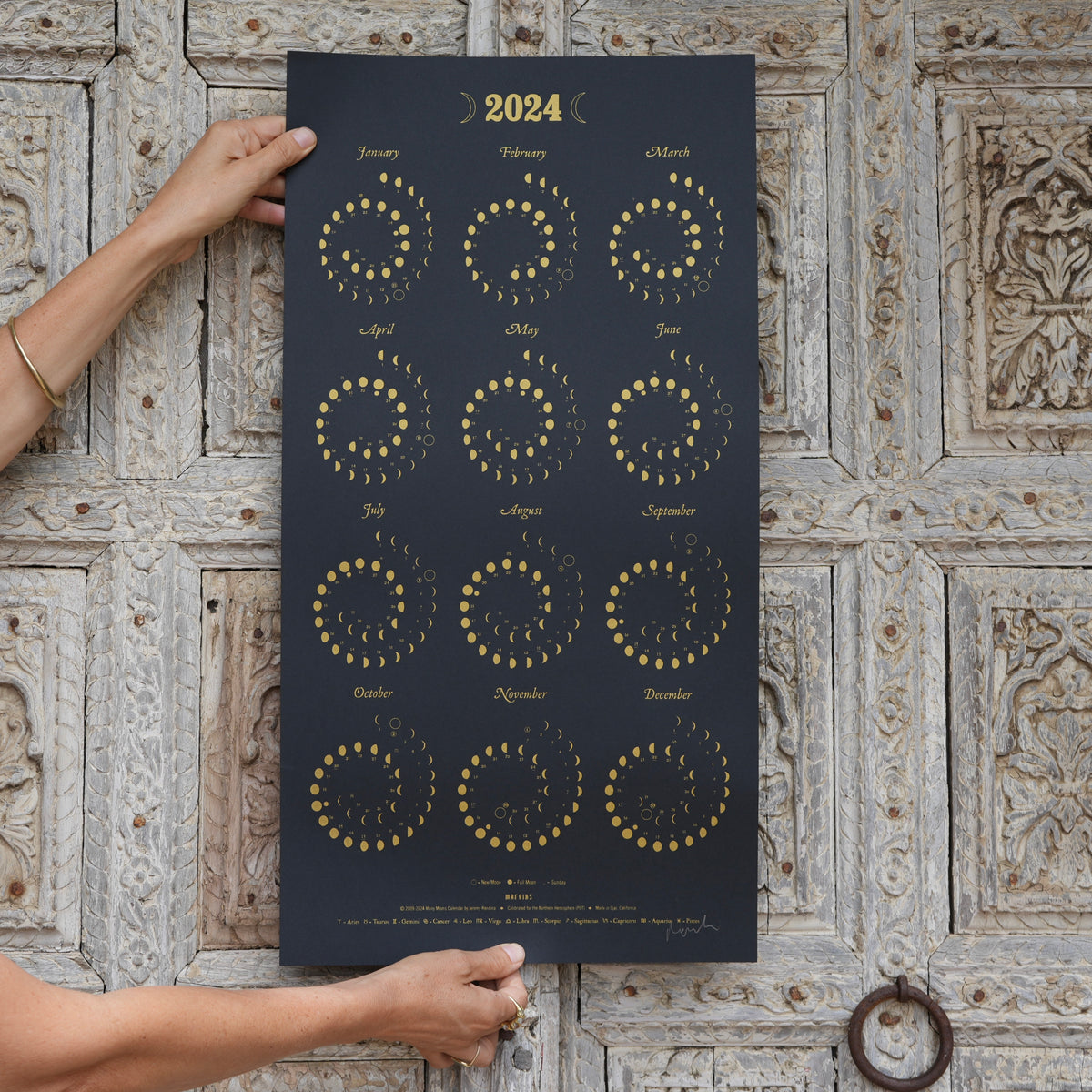 2024 Large MOON CALENDAR in GOLD on Black Silkscreen Print Etsy